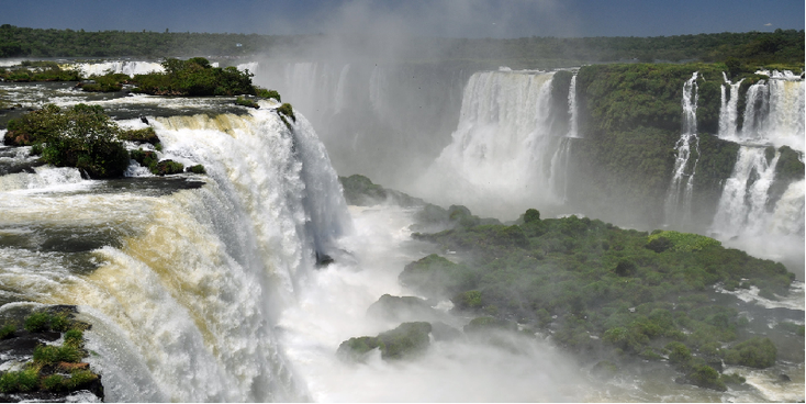 After seeing so much beauty, the first Lady spoke: "Poor Niagara!" referring tot he famous waterfalls on the border of Canada and the US. The waterfalls of Iguaçu are indeed larger than those of Niagara. A better comparison can be made with the Victoria Falls in Africa. Iguaçu is 2.7 kilometers wider than the approximately 1.6 kilometers from the Victoria Falls, even without the 900 meters of various small islands between the waterfalls. The Victoria Falls, however, do not have any intermediate islands at high tide, making it the largest contiguous waterfall in the world. The Victoria Falls also gain in volume and finally in accessibility.