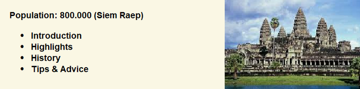 The city Siem Raep was no more than a small hamlet when French researchers found the complex of "Angkor" (back) in the 19th century. It was then still part of Siam (Thailand) which ruled over the city for more than a century. In 1907, when the French officially came to power here, it became a tourist area. No later than 1929 a large hotel came here and with a “lost” period during the war it is still "booming business" here.