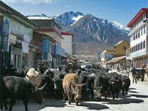 In the back of the car I fill in the papers, and if I want to get out the agent says that there is no bus today. For me it is questionable whether the bus does not come for me or does not come at all. It becomes clear when they take me to the intersection outside the village where they try to keep cars for a lift. I am unhappy because the cars are full or they go in a different direction. An old motorcycle will stop, but then I would rather stay a day here in Langmusi. The agents bring me back and I decide to sit on the veranda outside and play with the "yak-dog". He is stuck to a thick chain because he seems to cost a lot of money with his pitch-black fur against the cold.