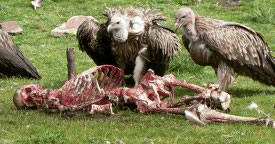 With the knife he makes a large circle around the body and then starts cutting into the body until it consists of large pieces of meat. He then mixed these with cornmeal while the hungry vultures are circling above the cemetery. The Tibetan see the body as one means of transport during life and when the soul has left the body has no sense anymore, and to serve life one last time they do this by giving back to nature.