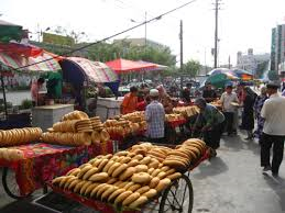 Me and the Geman woman I met booked a tour yesterday and in the early morning buy some "nan" before we go to the place where we have agreed. An expensive car is our part, but we have to share it with two Chinese tourists. The first stop is at the Flaming mountains and the two do not understand that we do not go along.