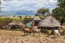 One is filled with goats and the other with cows with sometimes a bull that tries to break loose. If one of the Tsemay wants to try my sunglasses, it is my chance to take a good photo, but it takes me a lot of trouble to get my glasses back. Dominique and I decide to skip lunch and try to get this afternoon to Arba Minch.