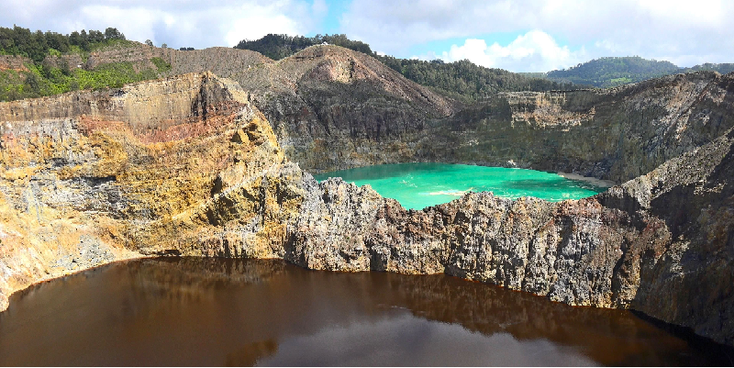 Unfortunately the driver says that it is rainy season - this is not the best time of the year for the sharpness of the colors, but still. We look at the three lakes and we see a slightly vague green, black and light turquoise colour. A few years ago they were still blue, brown and black, the driver tells us. Legend has it that the local people who still live here think that the souls of the deceased go here; the young in the green warm lake, the elderly to the turquoise lake which is colder and the thieves and other criminals in the black lake.