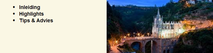 Santuario de las Lajas is inmiddels uitgegroeid tot een klein dorpje met als belangrijkste bezienswaardigheid – de wat mystieke, eigenaardige kathedraal die op de plek is gebouwd waar de maagd Maria verscheen op de 40 meter verticale rots waartegen de kathedraal is gebouwd.