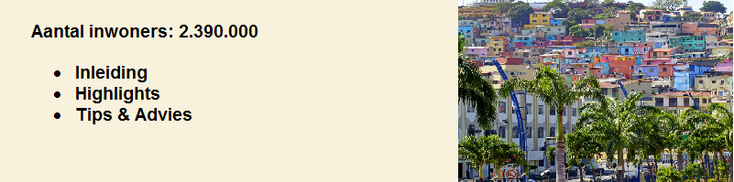De grootste stad van het land is gelegen in een grote baai aan de zuidkust van Ecuador en is een zeer drukke liberale havenstad. De naam heeft ze te danken aan een zeer dappere indianenopperhoofd die eerst tegen de Inca’s en later tegen de Spanjaarden streed om z’n stad te beschermen.