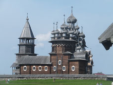 Kizhi is te bereiken met een boot en is een museumeiland met o.a. een reeks prachtige houten kerken.
