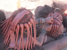 In een klein dorpje vlakbij Opuwo komen we in aanraking met een hele stam Himba's.